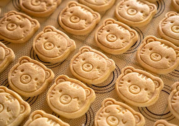 Specialized equipment for shaping and baking adorable bear-shaped biscuits, ideal for kids' snacks.