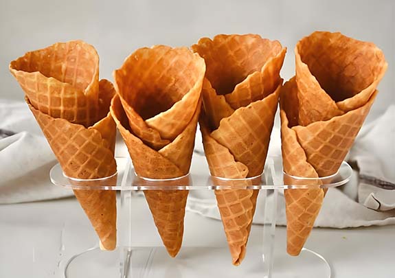 A single machine produces various Chinese-style egg rolls and ice cream cones.