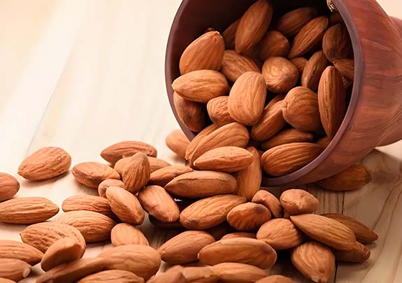 Precision device that cracks almond shells while protecting the delicate nutmeat inside.