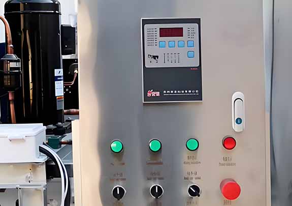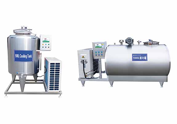 The refrigeration tank has a tank and compressor. The tank wall uses special panels to cool milk directly. The compressor has a Copeland unit with imported valves and a safety feature to prevent damage. The tank is made of stainless steel with a cleaning sprayer and mixer. It has good insulation.