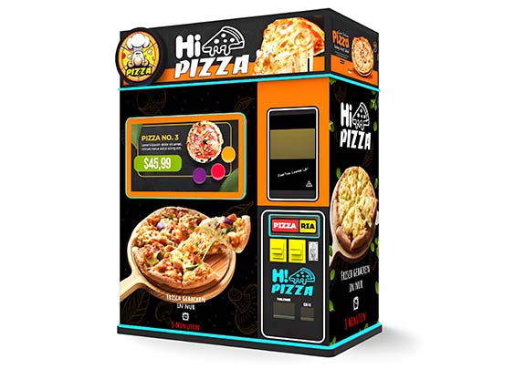 The pizza vending machine serves busy spots: scenic areas for tourists, schools for students, playgrounds for kids, malls for shoppers, amusement parks for guests, internet shops for tech fans, theaters for moviegoers, and game centers for players. It delivers fast, fresh pizza anytime.